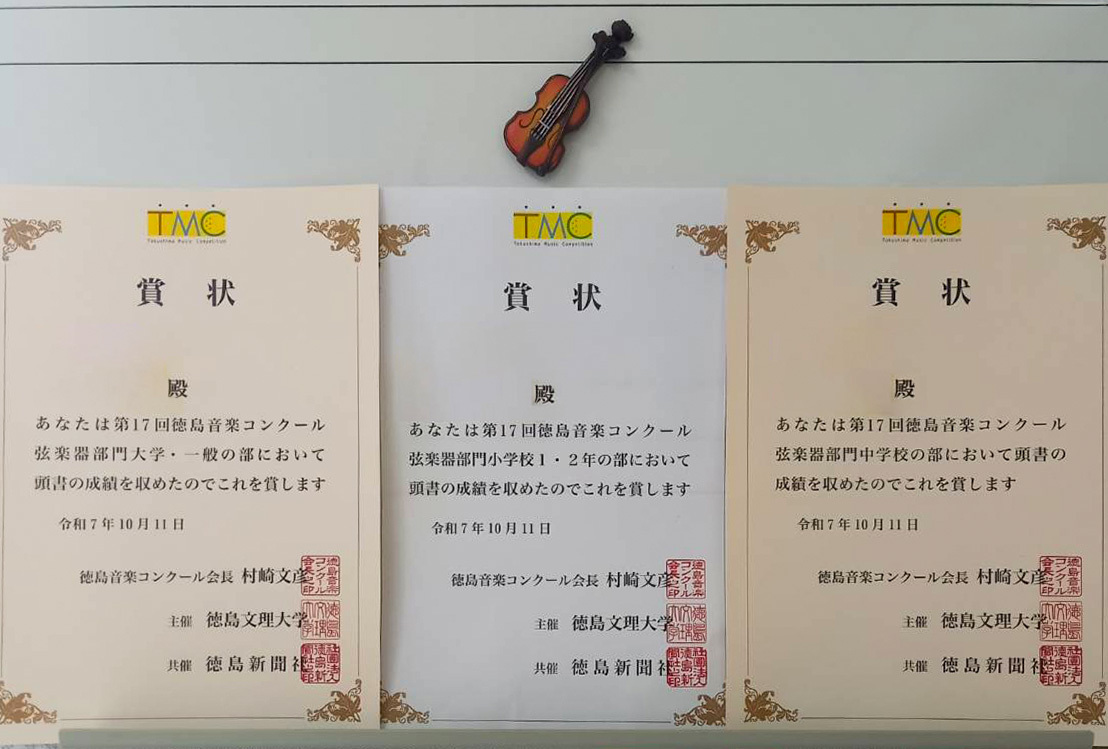 | 2021.7.25 | 第49回 児童音楽コンクールにユリヤバイオリンアカデミーの生徒が参加(小1, 小2, 小3, 小6) |